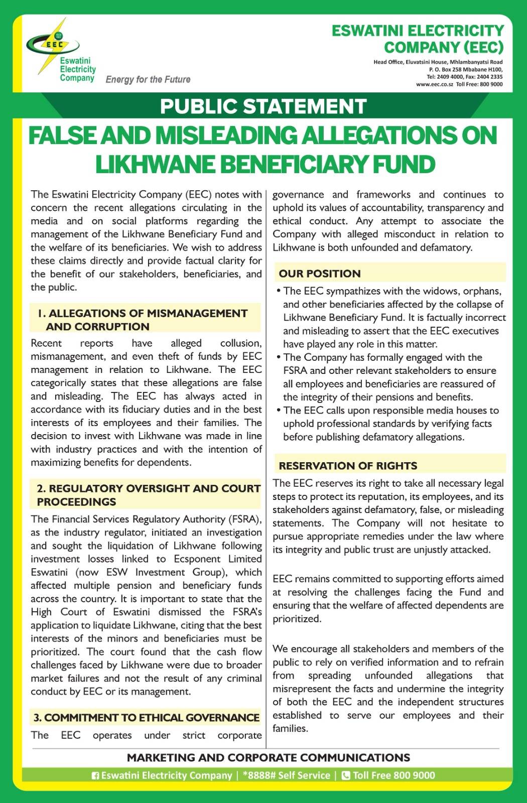 FALSE AND MISLEADING ALLEGATIONS ON LIKHWANE BENEFICIARY FUND